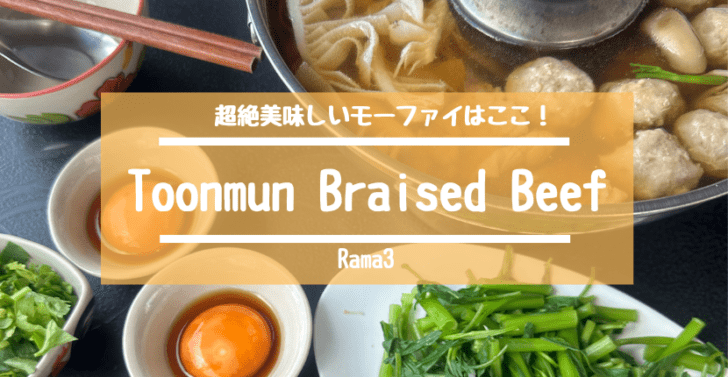 さて、本日ご紹介するのはラマ3にある「Toonmun Braised Beef Rama3 ตุ๋นมัน เตี๋ยวเนื้อ」です。ずっと前からマップを見てすごい気になっていたのですが、今年になって何度か行く機会が与えられて行っているのですが、とにかく美味しい!今まで食べてきたモーファイの中で、一番好きだと思えるくらいに美味しい。そして、具材がどれも新鮮で臭みもなくてさらに食べやすいという素敵なお店です。辺鄙なところにありますが、タイ人にとても人気なようで閉店前に売り切れになってしまい店じまいすることもしばしばあるようです。