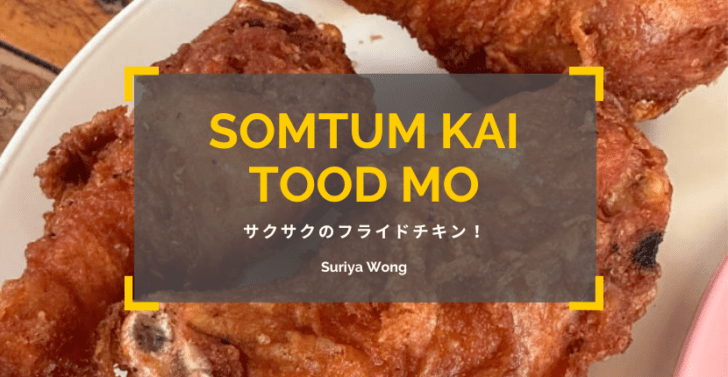 さて、本日ご紹介するのはシーロム通りソイ26の近くソイ・プラモット1/1にある「Somtum Kai Tood Mo(ソムタム・ガイトード・モー)」です。こちらのお店では、揚げたてサクサクの美味しいフライドチキンをいただくことができます。平日の昼時はタイ人たちで賑わっています。フライドチキンだけでなく、その他色々なタイ料理も楽しめるのでおすすめのお店です。