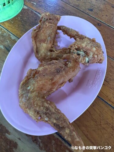 一番先に出てきた料理が手羽先のフライドチキン 1つ10バーツ