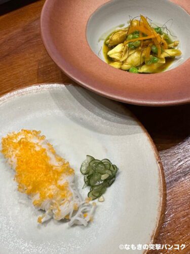 特にこの卵黄が絶品。62度くらいで2時間以上じっくり調理をして程よいテクスチャーが出来上がるのだそう。コームーヤーンと一緒に食べると本当に美味しかった!